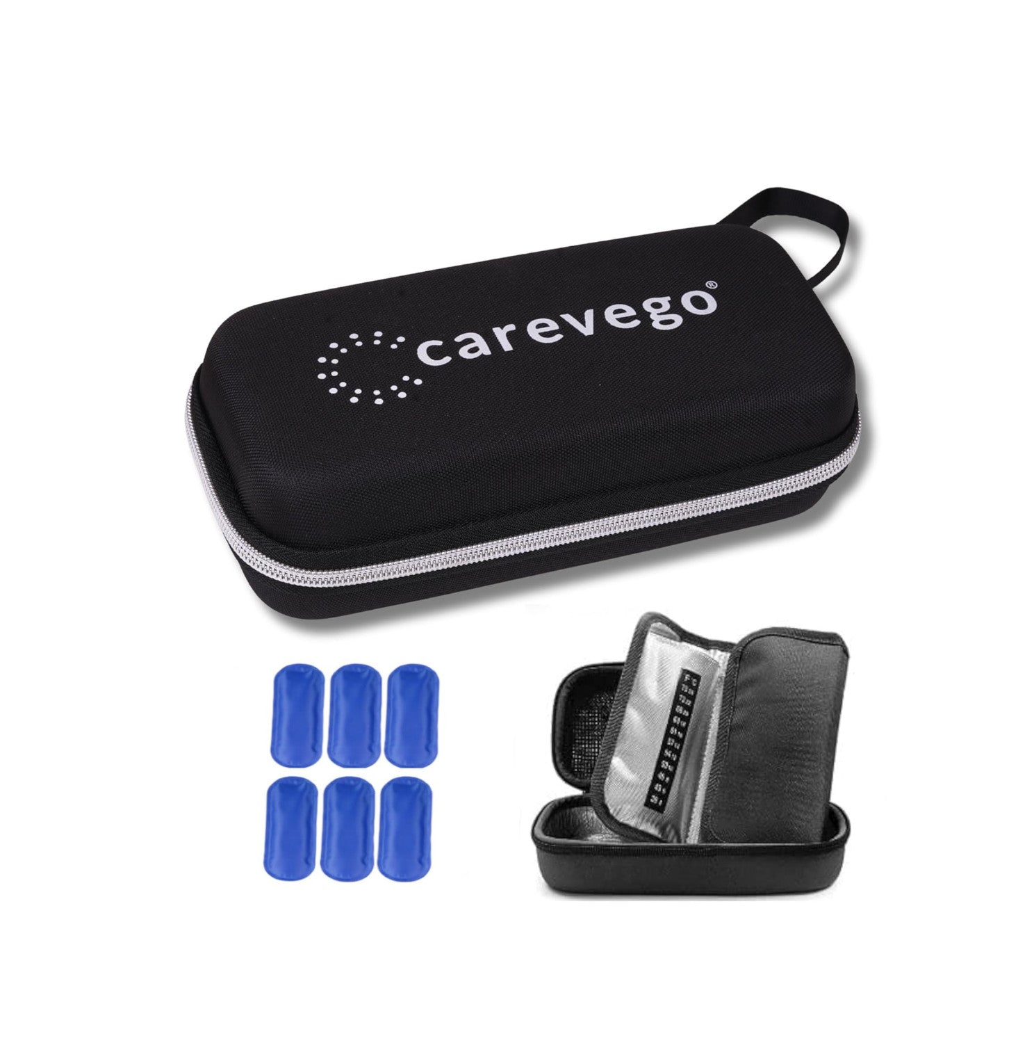 CareVego® Insulin Cooler Travel Case (Black 3+3 Ice Packs) [8h-12h]