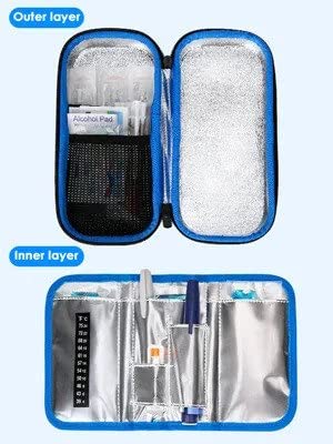 - Great Protection - The diabetes insulin pen case made of hard EVA material with waterproof nylon fabric, can protect your medication syringes, vials, diabetics kit safe without being crushed during trips. Temperature strip can monitoring the temperature of insulin storage bag.
