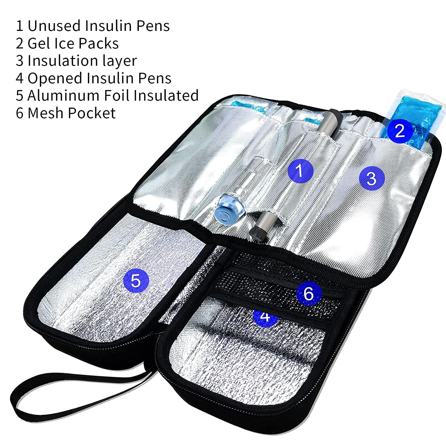 - Strong Insulation - Diabetic Cooler Insulin pen case is lined with padded & quilted layers and Aluminum foil that provides a thermal insulating barrier. Keeping diabetic supplies in suitable temperature.